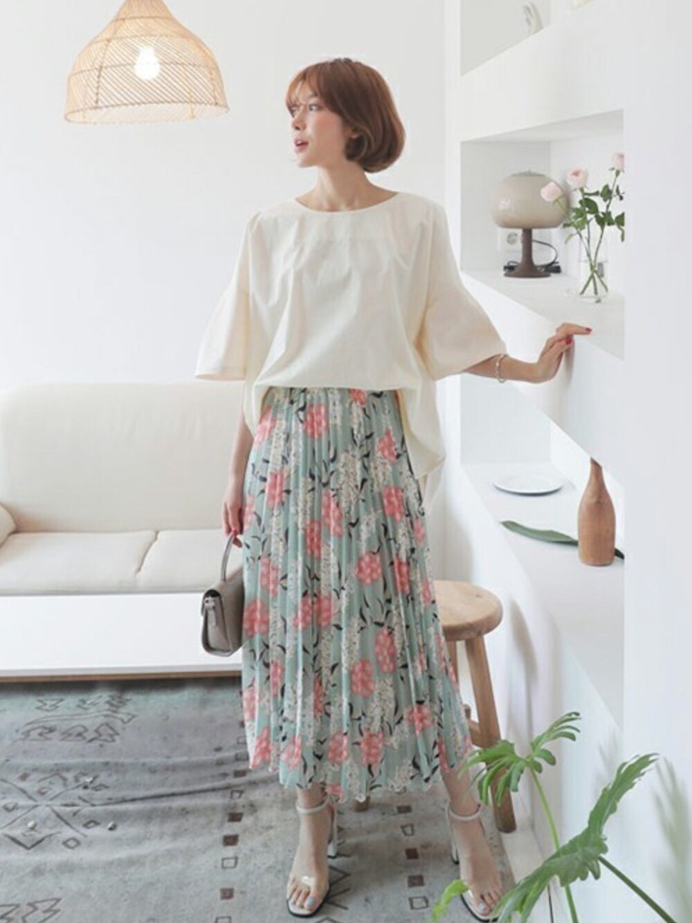 ディーホリックのスカート「プリーツフラワープリントスカート」を使ったコーディネート