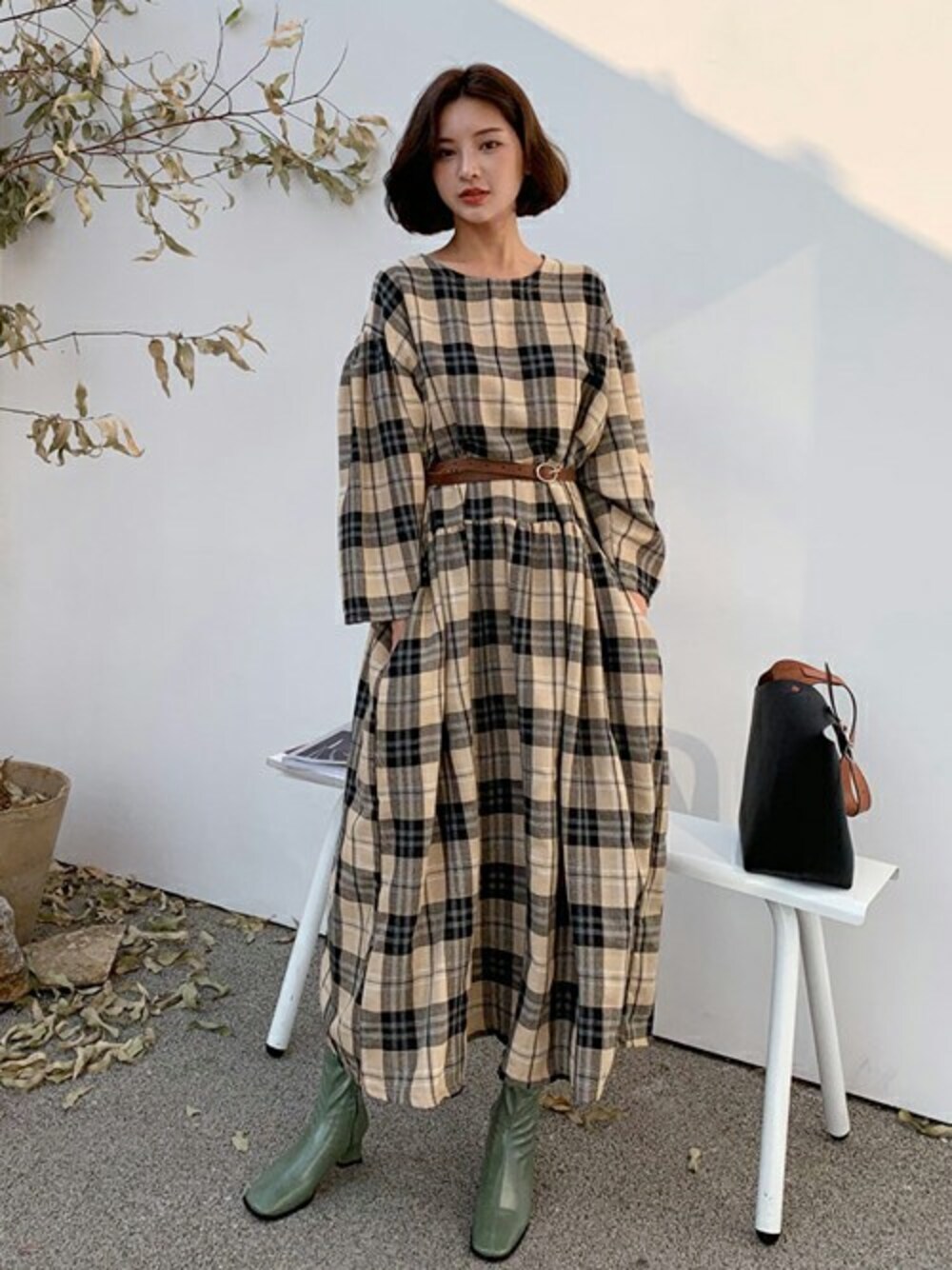 ディーホリックのワンピース「ルーズチェックワンピース」を使ったコーディネート