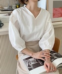 ディーホリックのシャツ/ブラウス「Vネックパフスリーブブラウス」を使ったコーディネート