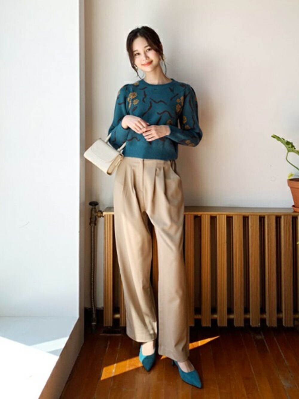 ディーホリックのニット/セーター「フラワーパターンニット」を使ったコーディネート
