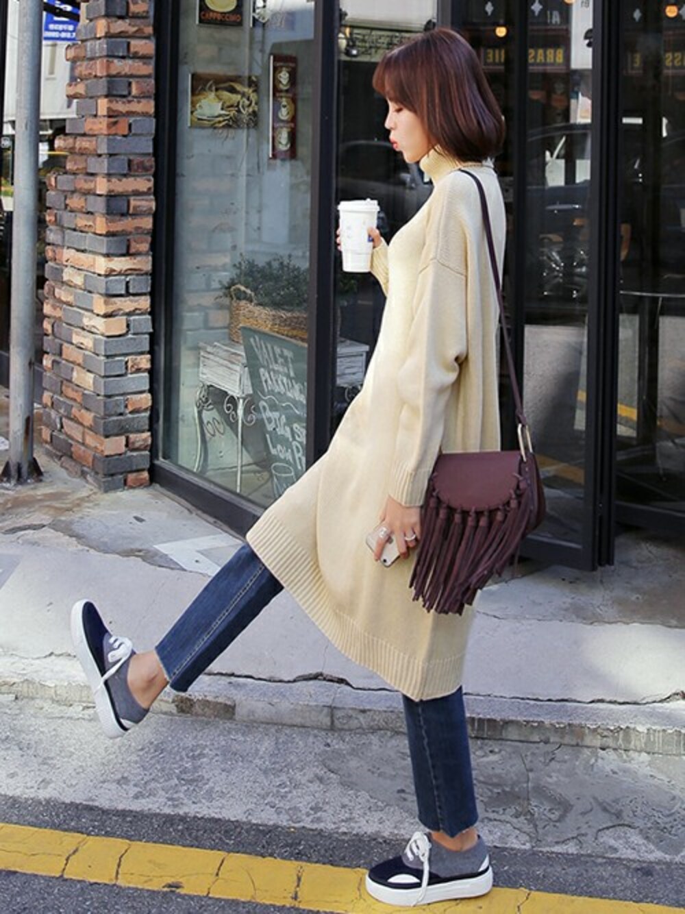 シンプルなミモレ丈のタートルネックワンピにデニムを合わせた ゆるっとしたカジュアルスタイル♪ 今年は膝丈より長めなニットワンピがトレンド!! 写真のようにデニムをあわせるのはもちろん、カラータイツを合わせても可愛い♡ ☆DHOLICの新作は24時間限定で10%OFF☆ :::::::::::::: DHOLIC's Instagram account ↓↓↓ dholic_official ::::::::::::::