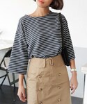 ディーホリックのTシャツ/カットソー「7分丈スリーブボーダーTシャツ」を使ったコーディネート
