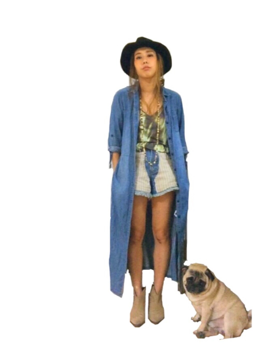 デニムのロングシャツを はおったバージョン☼꒰๑ϋ๑꒱♬ と、おすわりしているKIDくん♡ うん、これはおすわりです。