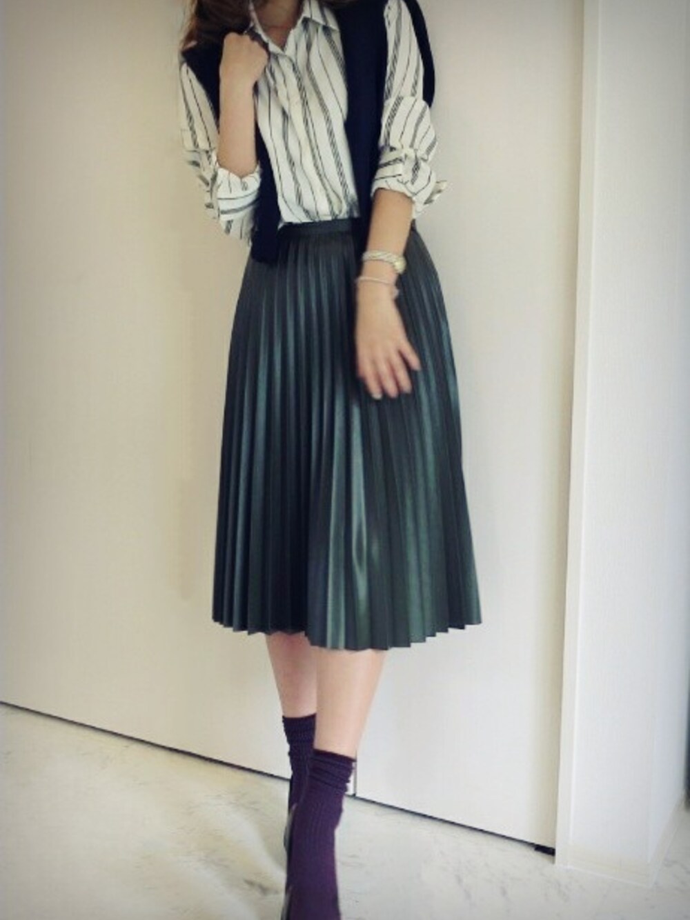 今日はあたたかったですね このくらいのお天気が過ごしやすくて好きです☆ フェイクレザーのカーキスカートに 新作のネイビーストライプのシャツを☆ ボルドー系のソックスに黒パンプスをあわせています DIARY 群馬県前橋市六供町464-5メルヴェーユ1F 027-212-7375 facebook https://facebook.com/diary30/ ameblo https://s.ameblo.jp/diary--30