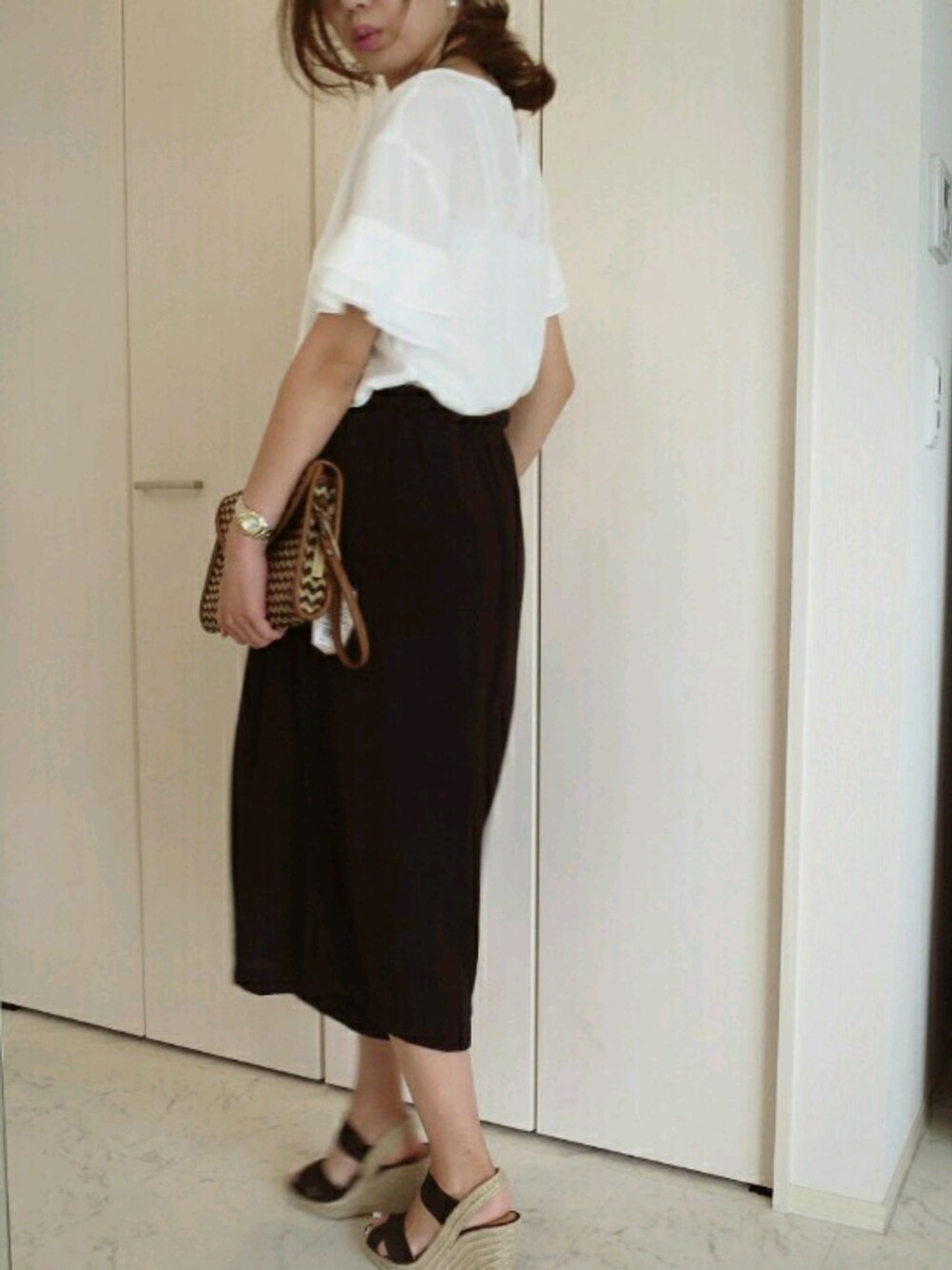 今日みたいな暑い日は サラサラ素材のブラウスとワイドパンツで涼やかに大人っぽく♪