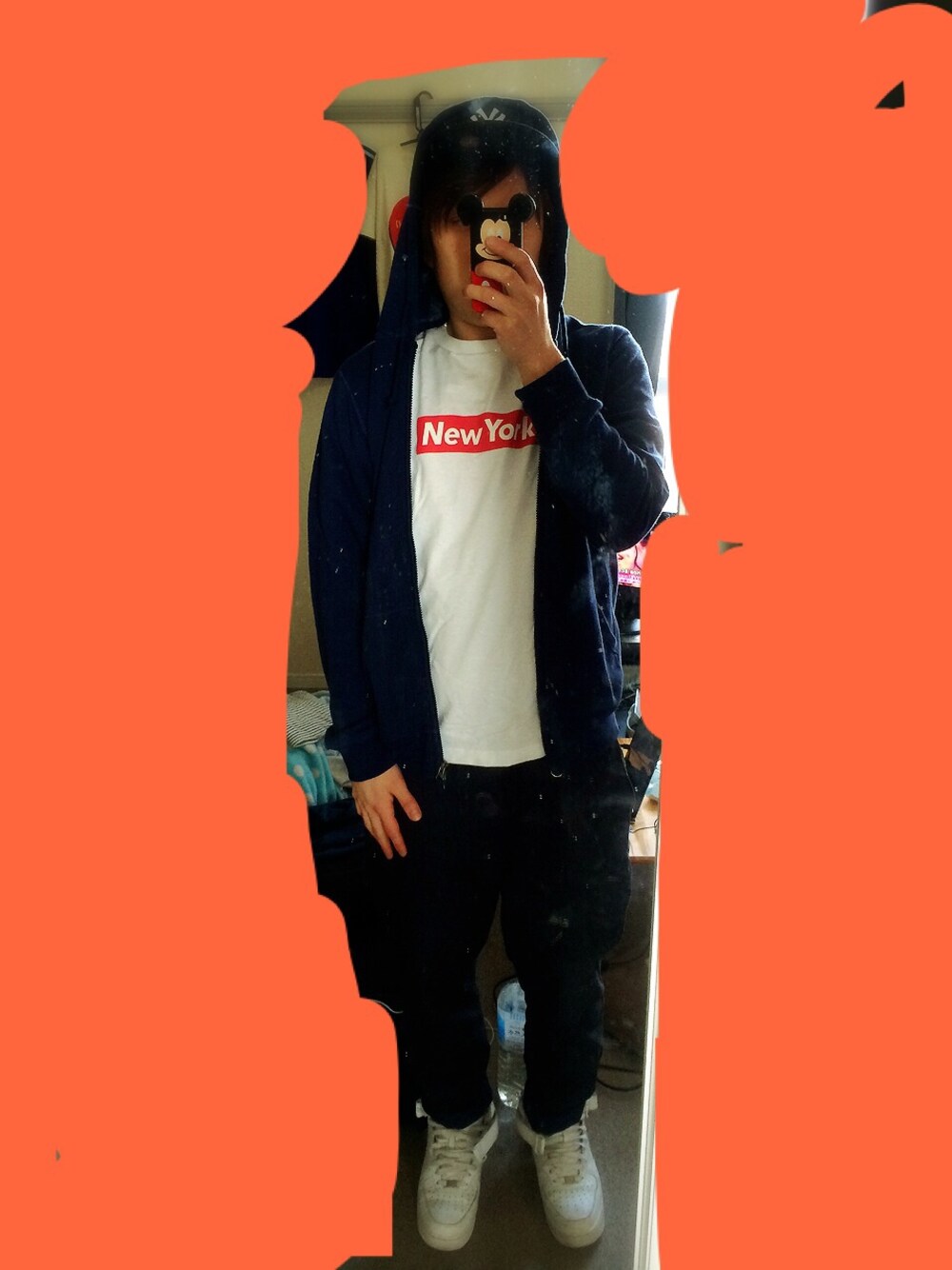 パンツとパーカーを ネイビーでセットアップコーデに してみたとき。