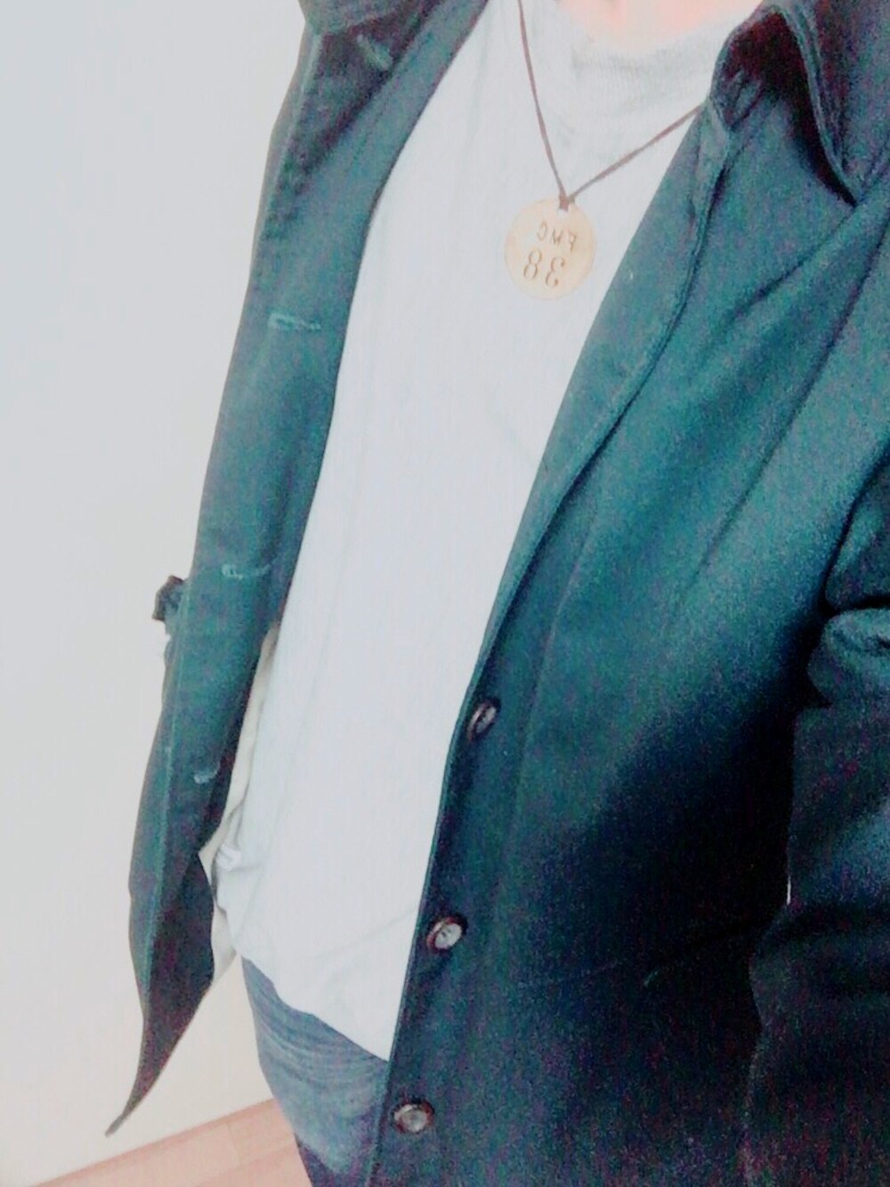 インナーの古着はchampionのワンポイントスウェットです。 なかなか調子いいです。 春先はこれ1枚で行こうかと