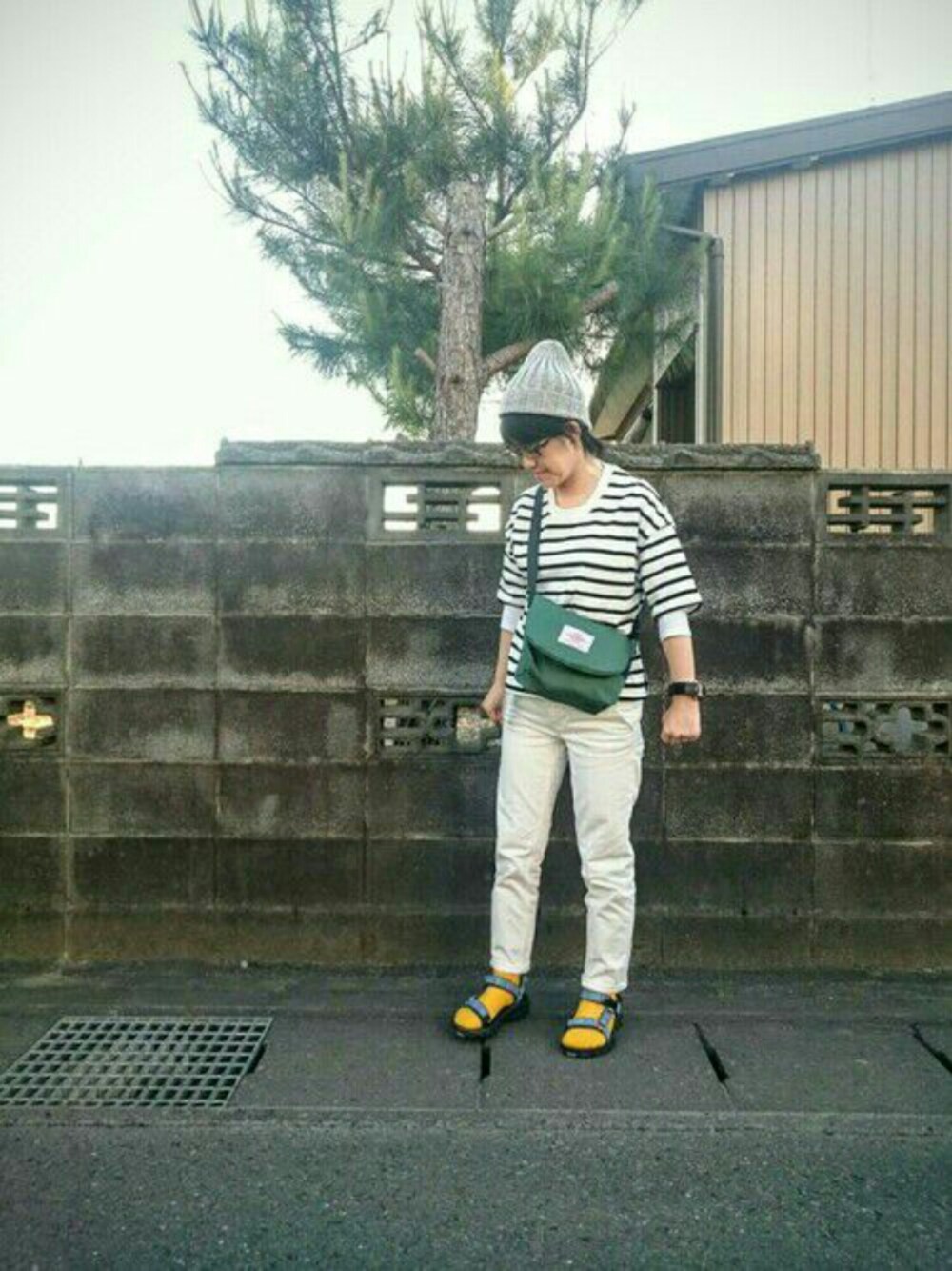 ochoのトップス「(GU)クロップドボーダーゆるT(半袖)」を使ったコーディネート