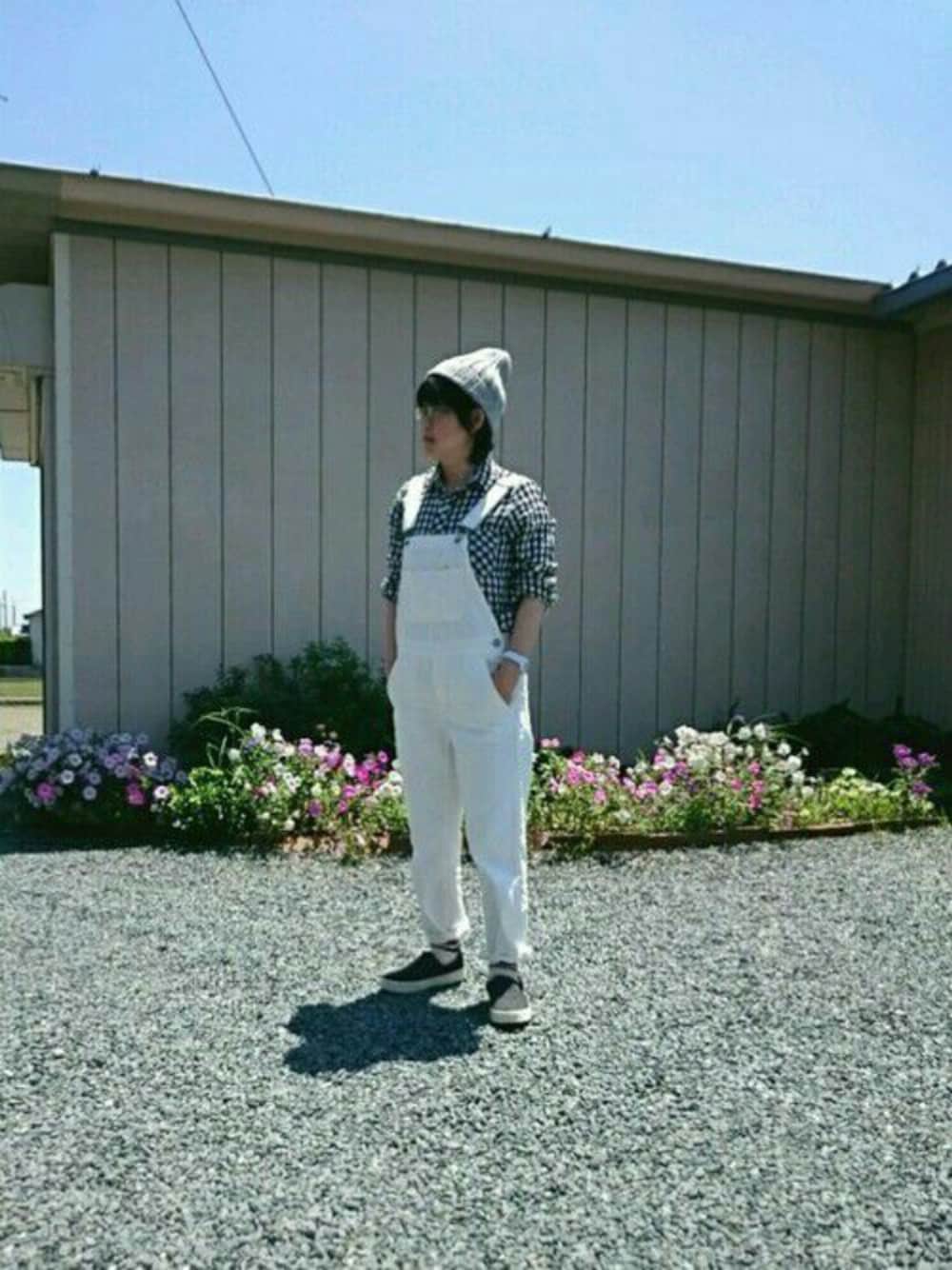 昨日より少し風があったど、今日も快晴です☀ 手作り味噌をもらいに実家まで なので楽チンなオーバーオールをササっと着て行ってきました 車なので足元はスリッポン🚙