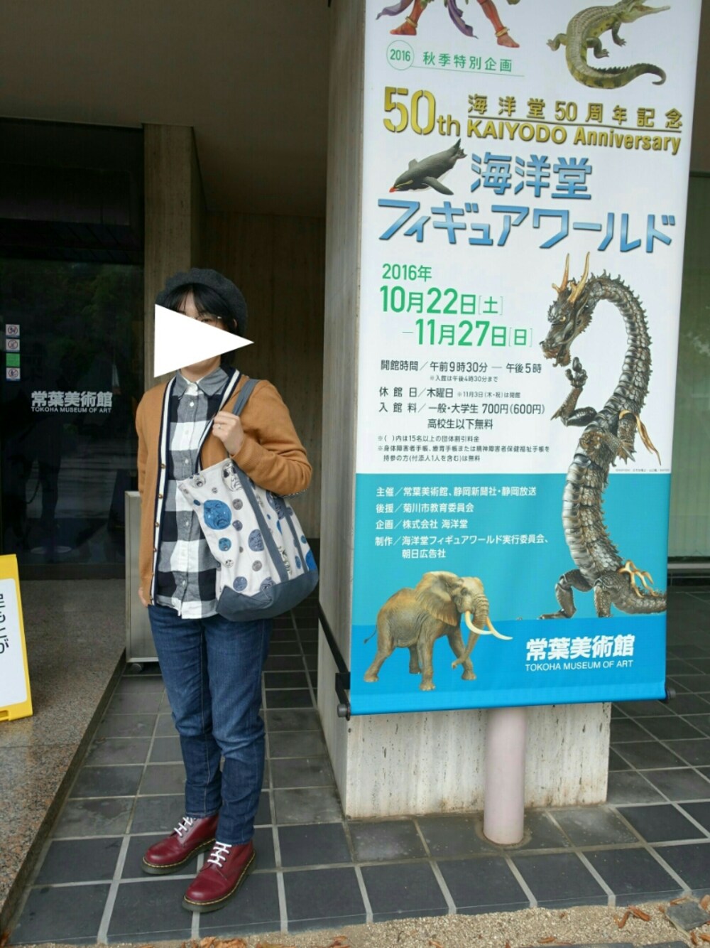 ちょっと前だけど・・・ 海洋堂のフィギュア展に行った時のもの チョコエッグとか懐かしかったな😊 雨でも気温高めだったのでカーディガンで 足元は長靴代わりにマーチン
