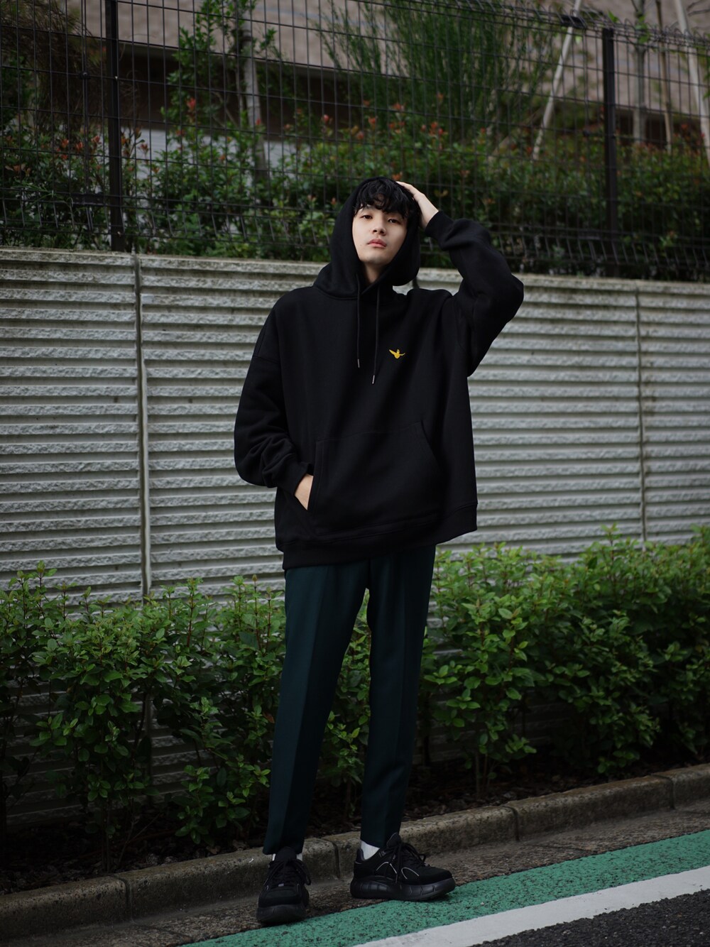 岡本 大護のパーカー「Mark Gonzales/マークゴンザレス 別注 ビッグシルエット プリント 刺繍 裏起毛 長袖 スウェット パーカー オーバーサイズ」を使ったコーディネート