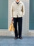 2025.11.14 ハイゲージ、ローゲージ、フランネル。いろいろウール素材の組み合わせ。 四枚目はいつの間にか和室の一角に出来上がっていた次女のオタコレクション。いろいろちいかわ組み合わせ。 Beret:ANATOMICA Cardigan:INVERALLAN Knit:DRUMOHR Trousers:Tangent Shoes:Alden Eyewear:10eyevan Jewelry:No Brand、Tuareg Watch:Rolex Bag:BUTTERO