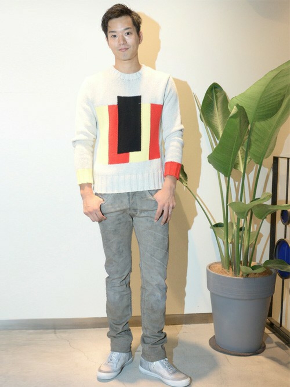 スタッフに人気のニットはシンプルにデニムと合わせて着こなせばすっきりとしたスタイルが出来上がります。