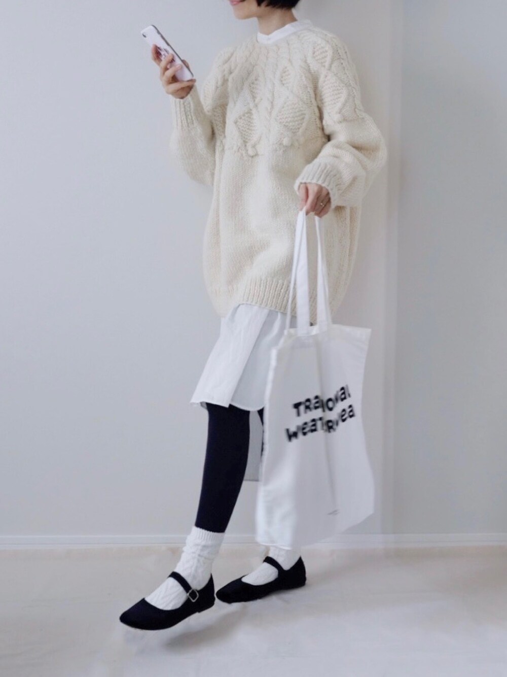 zua.のニット/セーター「求心ケーブルプルオーバー」を使ったコーディネート