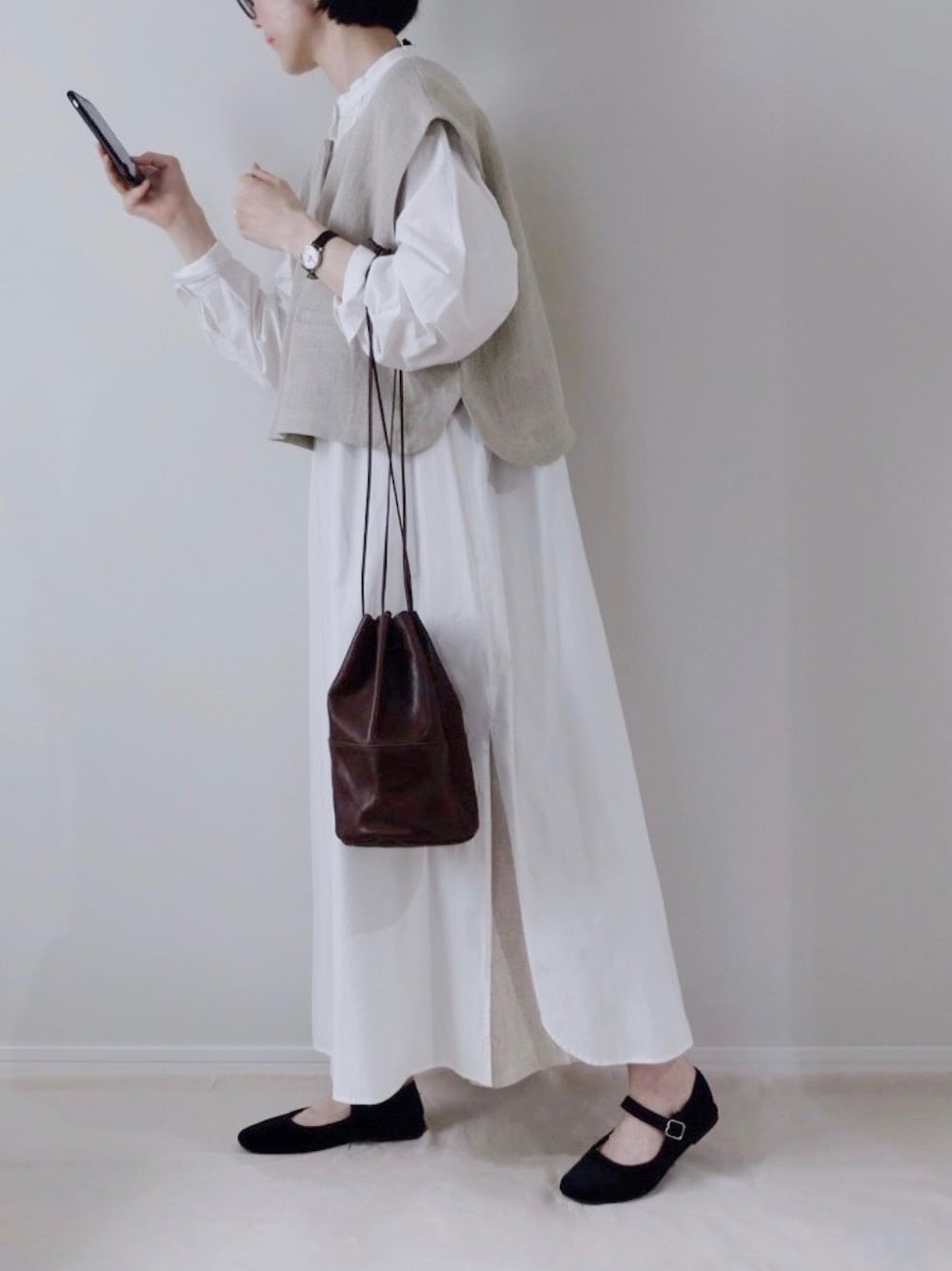 zua.のベスト「リネンショートベスト」を使ったコーディネート