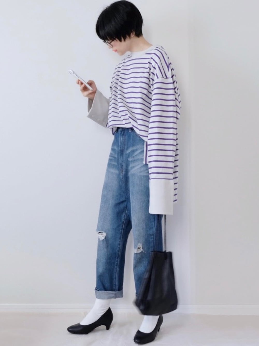 おはようございます𓇢 ひと目惚れしたカットソー🥰 袖のカフスボタンが可愛いの 更に、このお色🤍💜 すきだー😍 instagram ☞ zua8dieu
