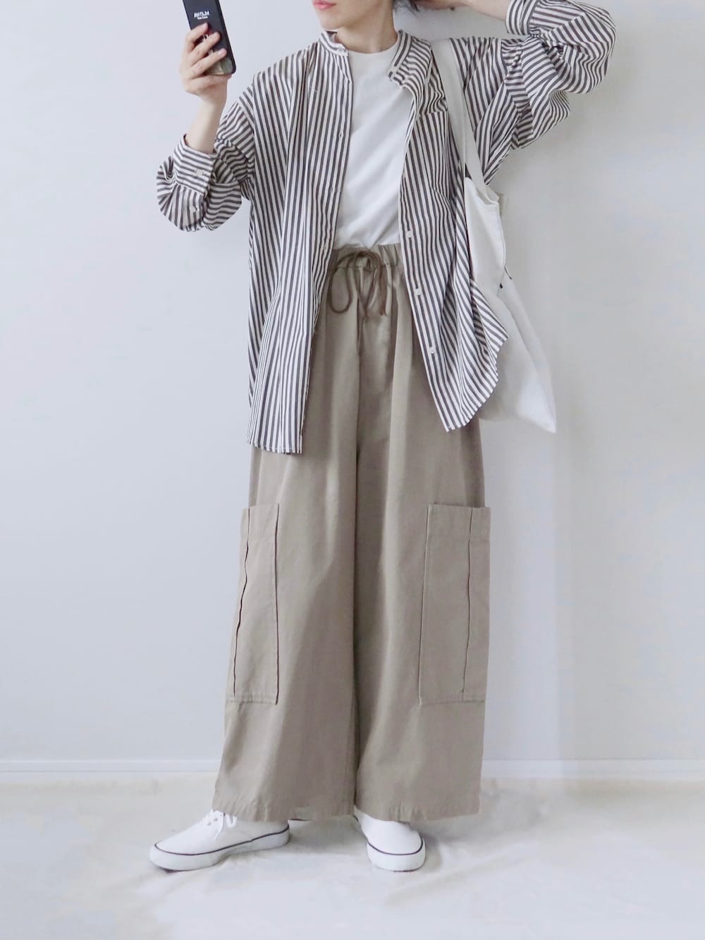 zua.のシャツ/ブラウス「バンドカラーシャツ」を使ったコーディネート