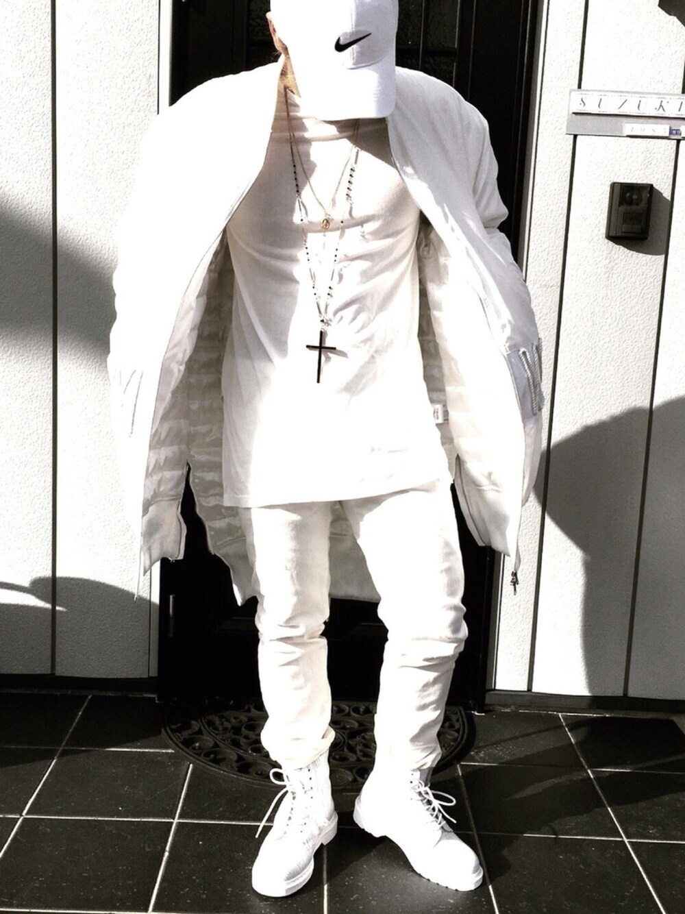 オーバーサイズで真っ白コーデ! 冬でも春でも!! アウターはレディースですがオーバーサイズでフリーなので誰でも着れます! 腹周りにリボンがついていて可愛いらしいma1になっております。