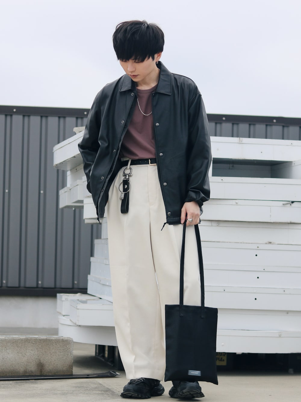 レザージャケットスタイル🚶♂️🚶🏼♂️🚶♂️ 中にシャツを合わせてレイヤード ウィムのホワイトパンツ良いですね✨