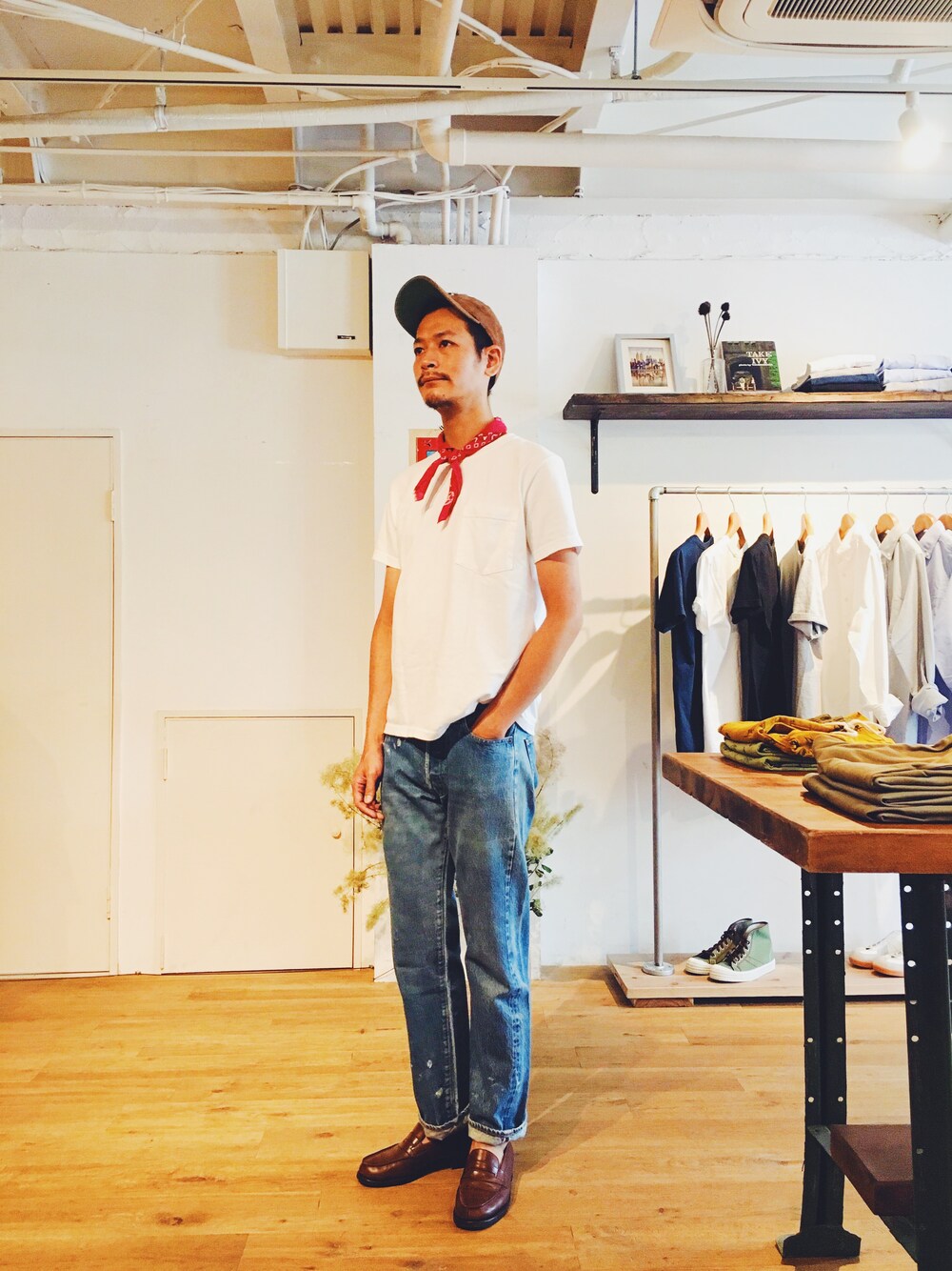 Vintage Levisを使ったコーディネートです。 色がいい感じに抜けていて今の時期にピッタリな風合いだと思います。 シンプルな大人の夏スタイルです。