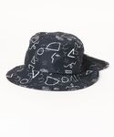 手描きの落書きモチーフ総柄プリントの可愛いデザイン!!!! コーデのポイントになる個性派ハット☆ ※このデザインは、後ろの日よけ布切替のみメッシュ切替 シンプルなロゴ刺繍がおしゃれな1枚。 少しゆったりめなシルエットでボトムスを選びません◎