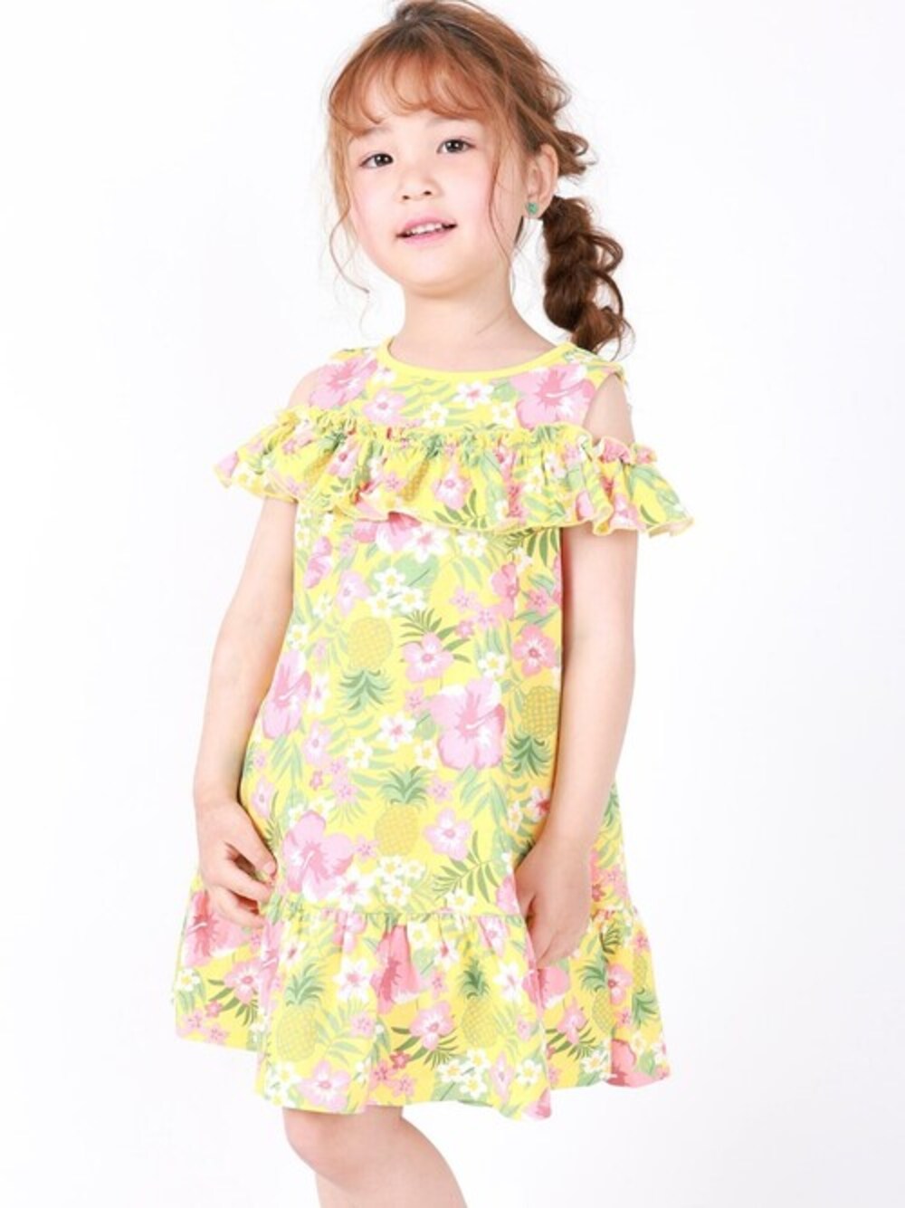 DIL baby&kids shopのワンピース「肩開き2WAY花柄ワンピース」を使ったコーディネート