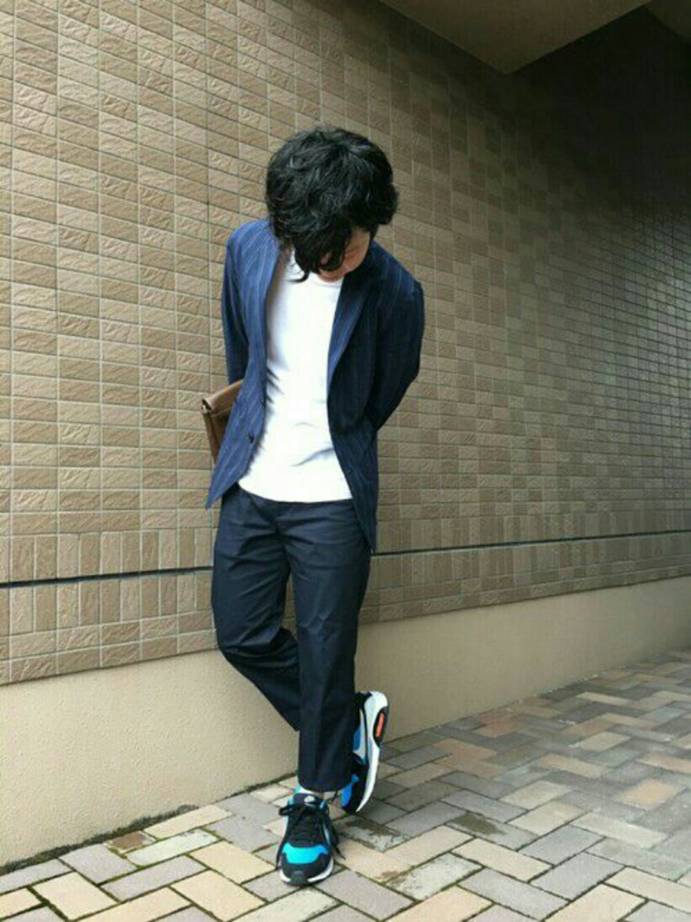 ストライプのジャケットは目線が上に行くので、 身長が高く見える視覚的効果。 ボトムスもキレイ目にして、クラッチもキレイ目にして、 足元をスニーカーで外す王道パターン。 でもその王道さが大事な事もありまするする。 少し肌寒い時に重宝するジャケットは、優れものです。