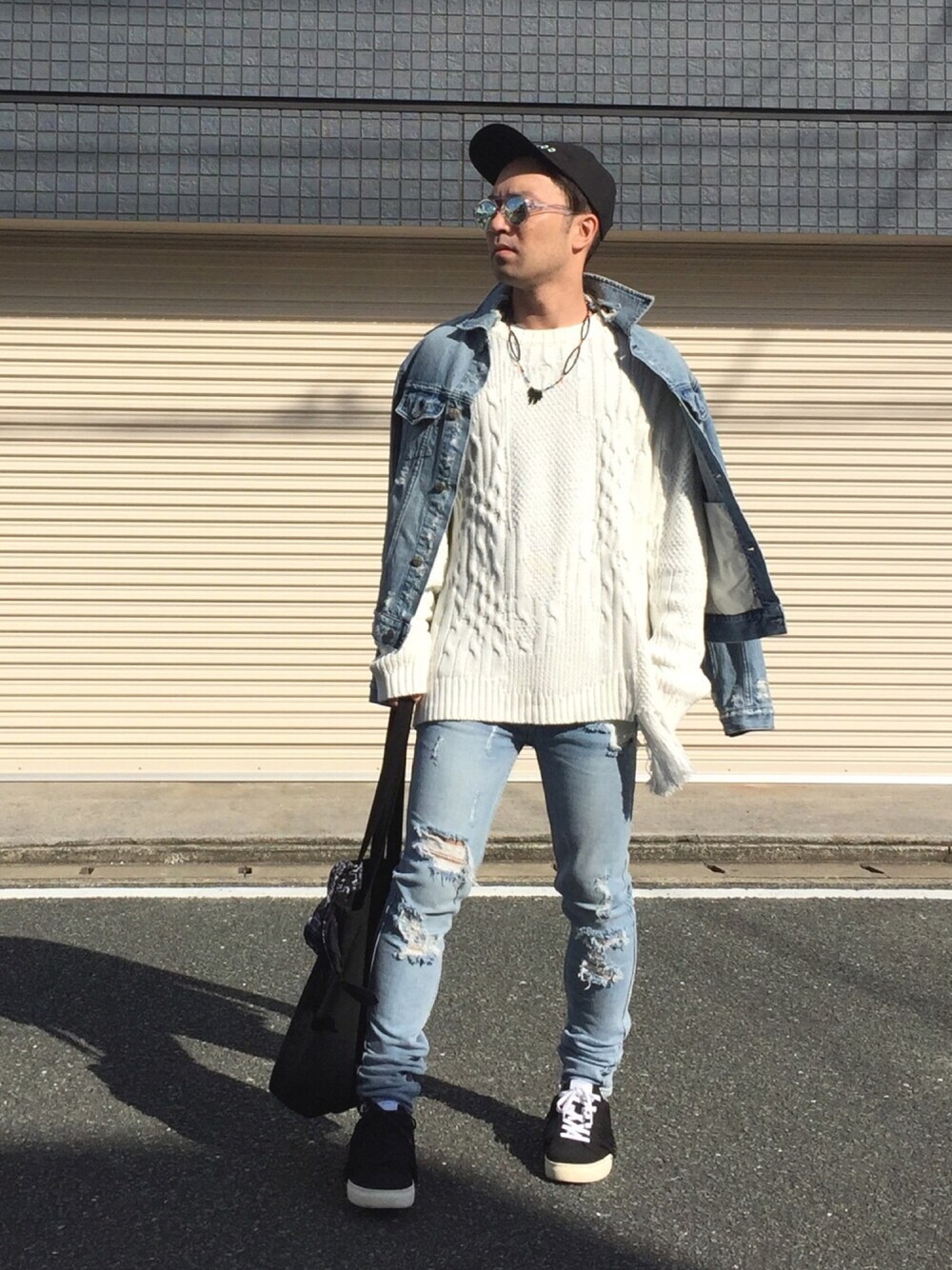 ご観覧ありがとうございます。 今日は、デニム ON デニム 👖 最近白ニットよく着てる感じ😎 Instagramもやってます。 そちらもよろしくお願いします。