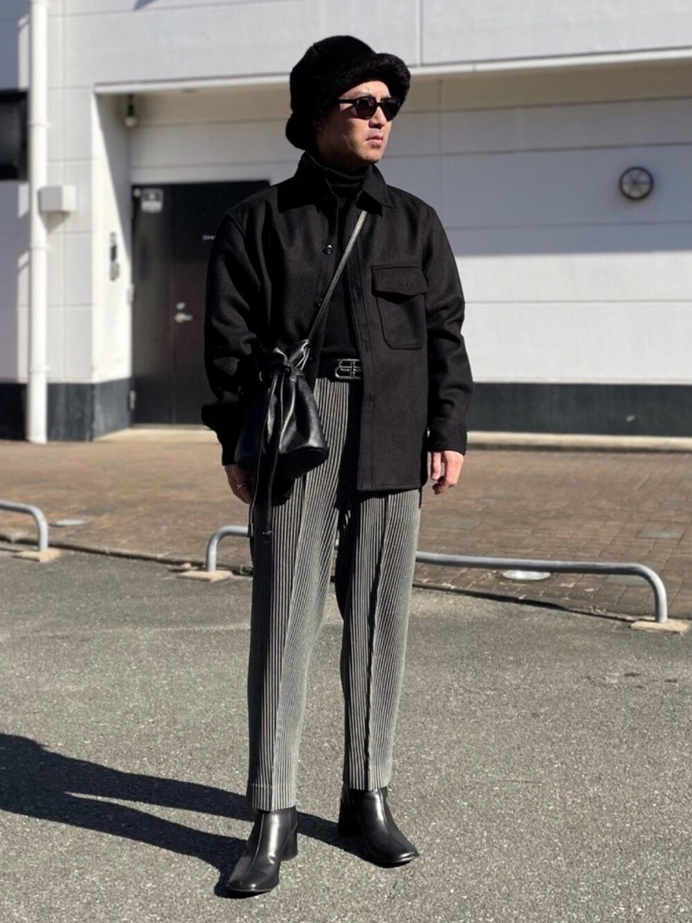 ご覧頂き、ありがとうございます😊 いいね、お気に入り登録も😌 推しブランド、homme plisse のパンツで、モードに🖤