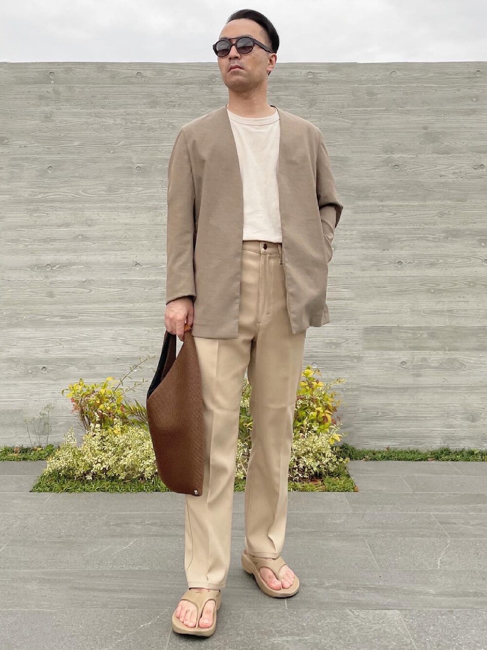 KEIのノーカラージャケット「CARREMAN ルームジャケット」を使ったコーディネート
