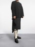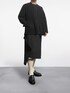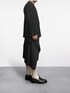 HOMME PLISSÉ ISSEY MIYAKEのプリーツジャケットとスカートを軸にしたモノトーンコーデ。 ブラックで統一しつつ、白ソックスとローファーで抜け感を演出。2本ラインがモードに遊び心を添えています。