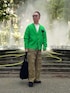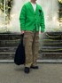 発色の良いグリーンのカーディガンを主役に、存在感のあるカーゴパンツを合わせたストリート×ミリタリーMIXスタイル。 カーディガンの柔らかい印象に対し、立体的なポケットワークのカーゴパンツがほどよい武骨さをプラス。 足元はブラックのシューズで全体を引き締め、バッグもシンプルなブラックで統一。鮮やかなトップスを活かしつつ、大人らしい落ち着きも感じられるバランスの取れたコーディネートに仕上げました。
