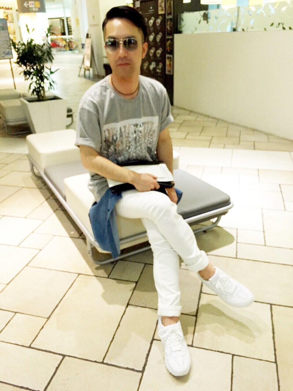 腰巻きスタイルです😎 やっぱり、足元は白が涼しげ😄 doubletのTシャツお気にすぎて、なかなか着れませんでしたが、今日はちと涼しげだったので😁