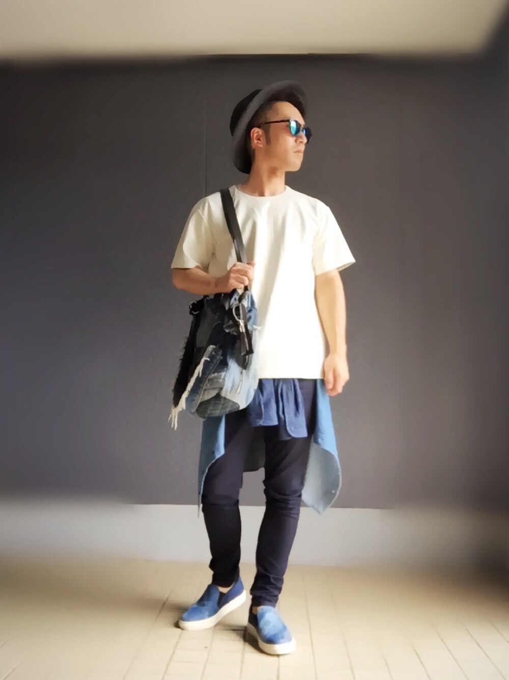 デニムシャツ・スリッポン・バックと小物使いで、SSトレンドだった、デニムを使ったコーデになります😎