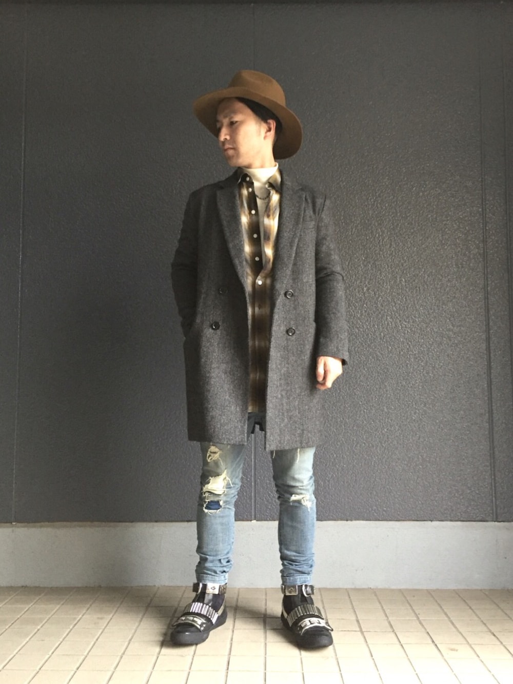 カジュアルコーデに、チェスターコートを羽織るだけで、こんなにもシックに😎 ネックレスはプチプラで😁
