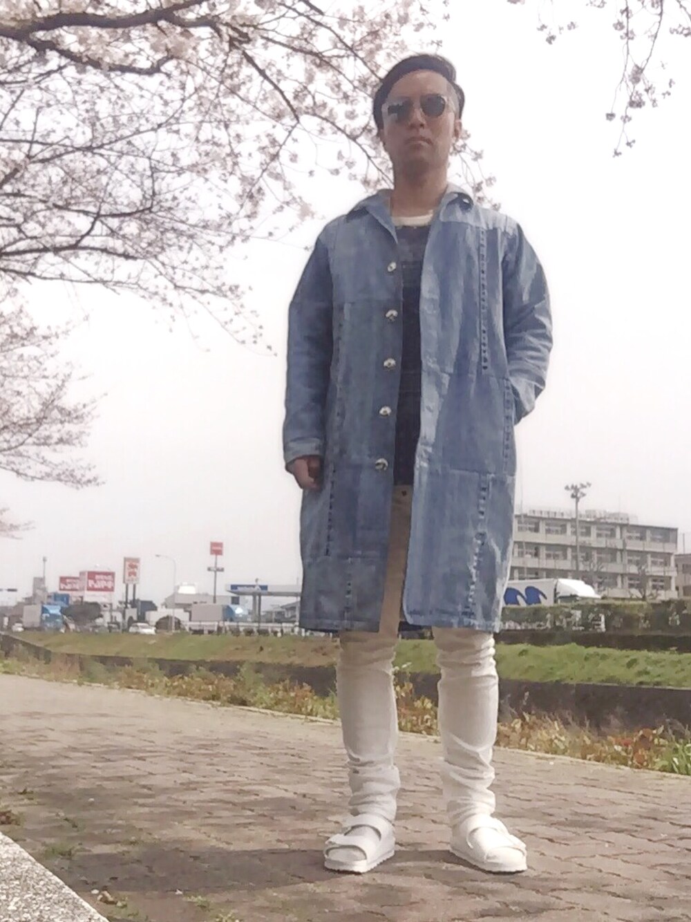 今日はライトブルーの603のパッチワークジャケットにスキニーとビルケンシュトックを白にして、春らしいスタイリングに😎 このサングラス、やっぱ買ってよかった😄