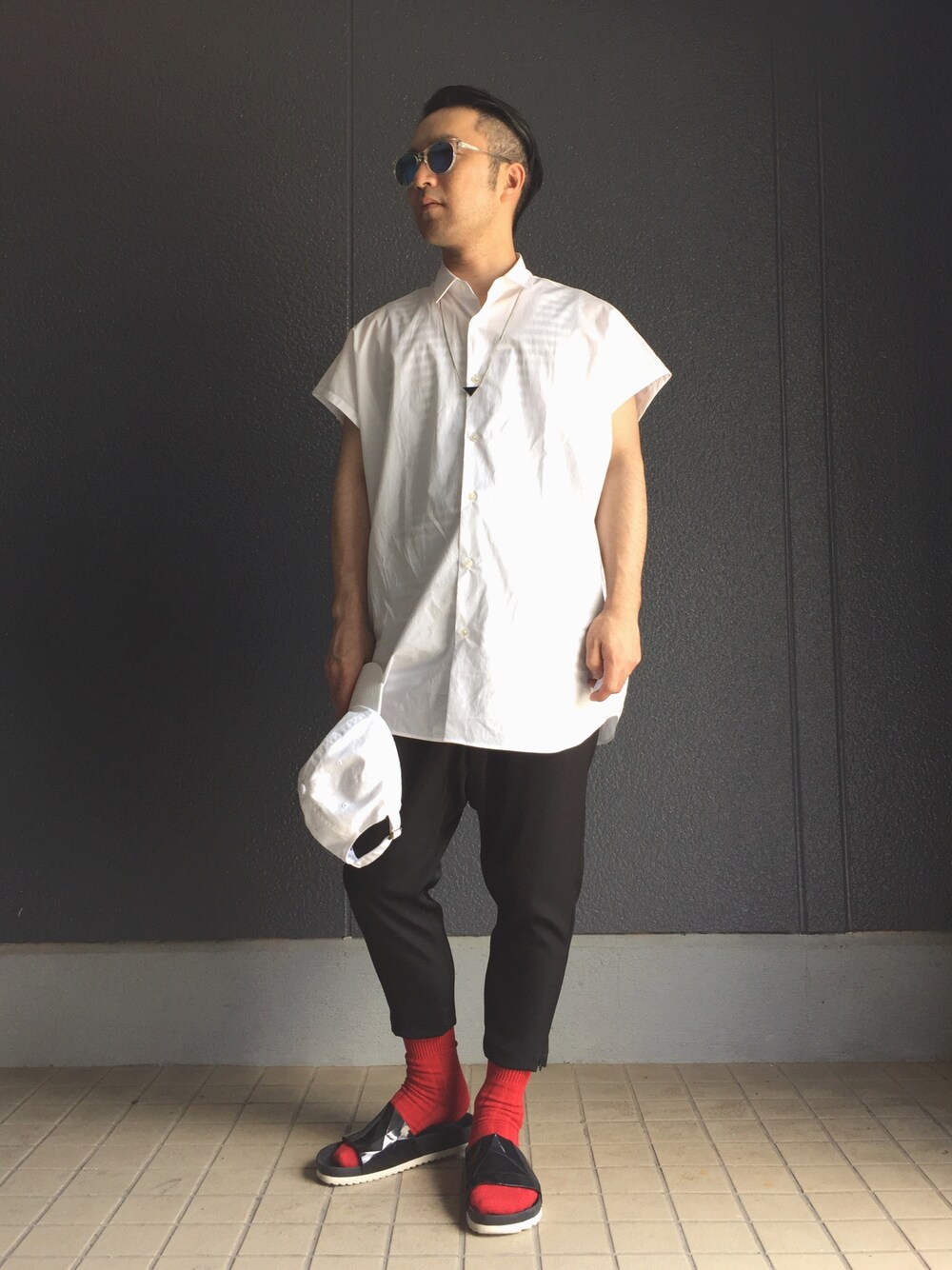 Normcore😎 ポイントは、シンプルですが、サリバンのビックシルエットのフレンチスリーブシャツに赤のソックスですかね😎