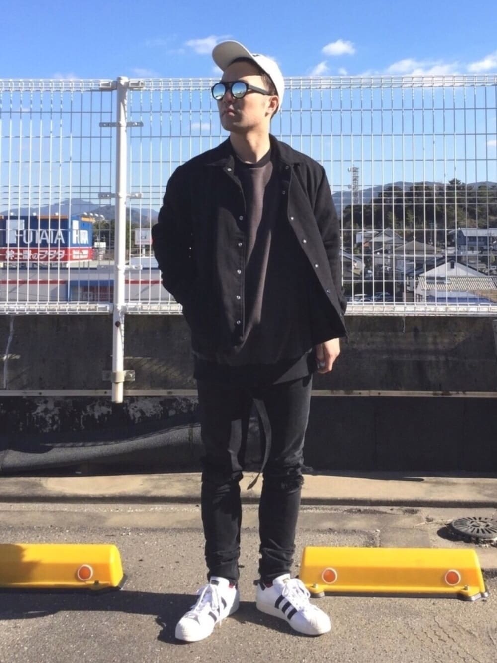 STREET STYLE 😎 最近ブラックが多めです😄 キャップとスーパースターで軽さを出してみました😄