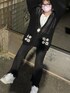 針織繡花罩衫很修身 搭配牛仔喇叭褲看起來更顯瘦