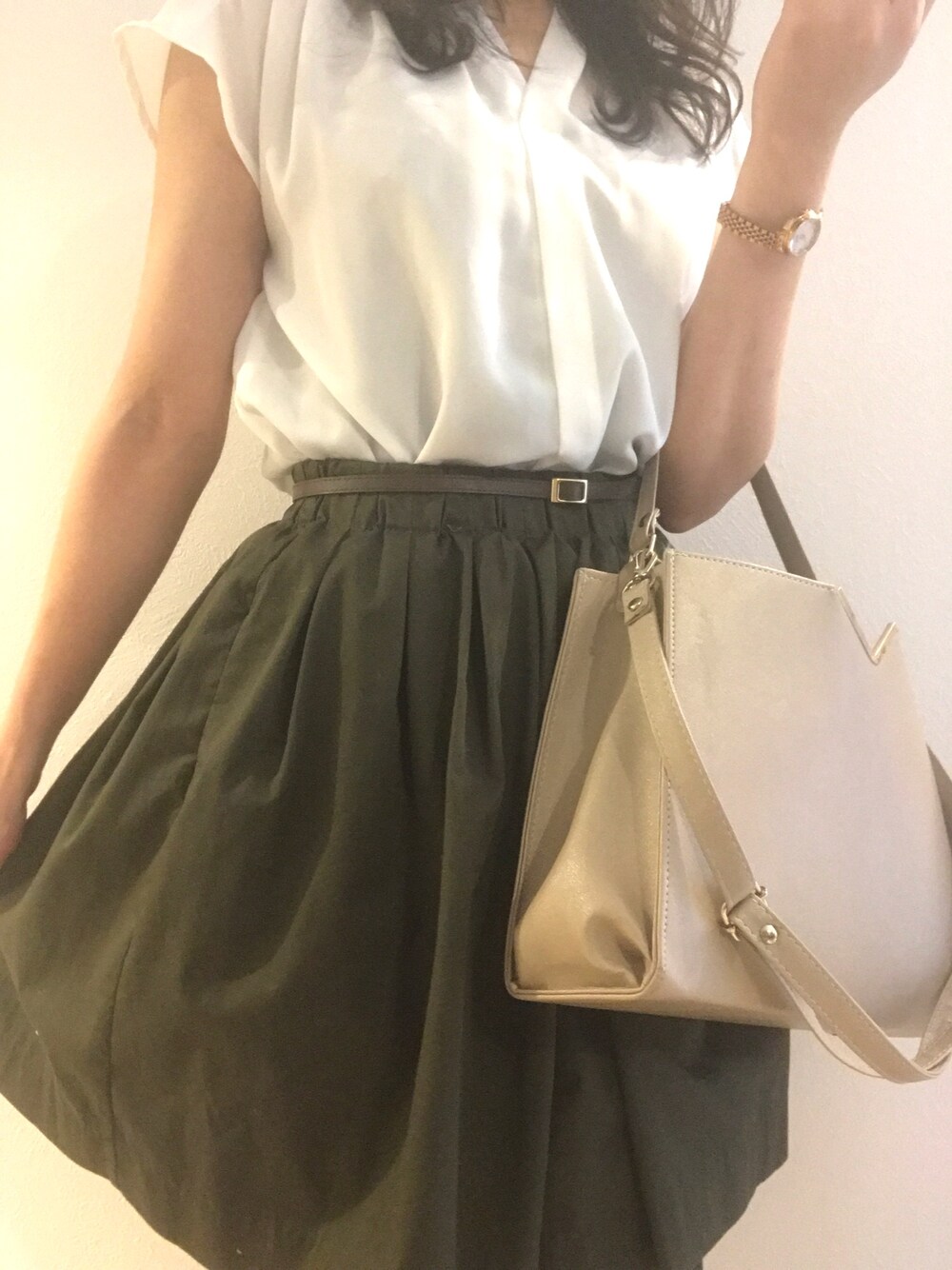 暑いですね、、 テラコッタのトップス合わせようと思ったけど、汗気になるし、もう少し涼し気な印象がほしくて白トップスにしました♪♪