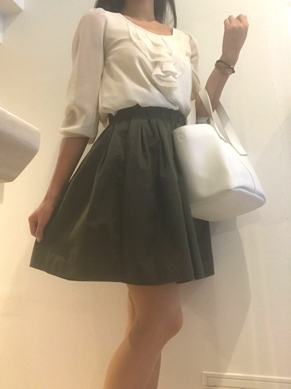 今日は午前研修 午後会議の2本立て! わたしと受付で喜んでくれてる人がいるのでスカートで女性らしくしときました!笑 というより、男性しか来ないのではなのつもりでw でもカーキで甘すぎず、ロペのブラウスできちんと感を出しました♪♪ 汗かかない時期ならスカートもロペにするけど、まだ微妙に汗ばむ季節ですね!