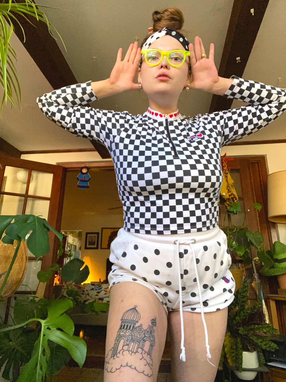 その他のスウェット、ホワイト系のブラ&ショーツを着用したレディースの秋コーディネートの1枚目の写真