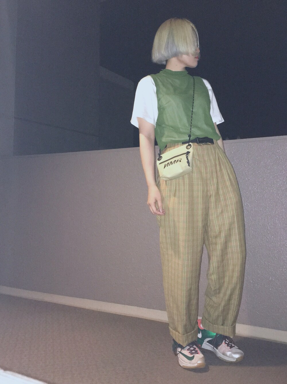 綾のタンクトップ「スケスケ素材」を使ったコーディネート