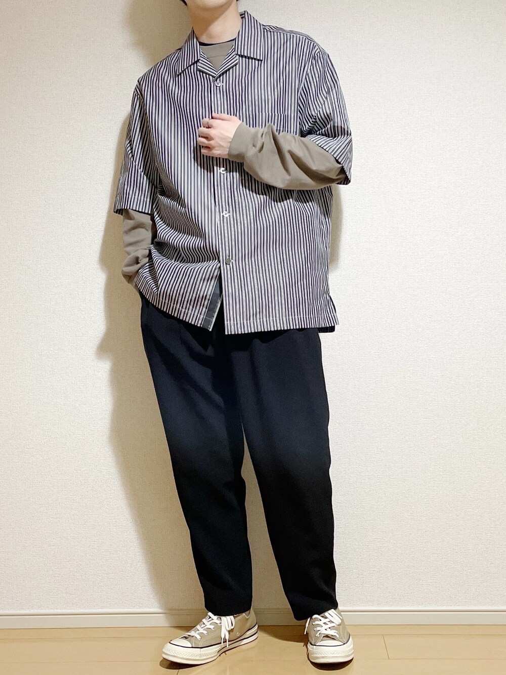 uniqlo+Jのスーピマコットンオーバーサイズオープンカラーシャツを使ったコーデ。