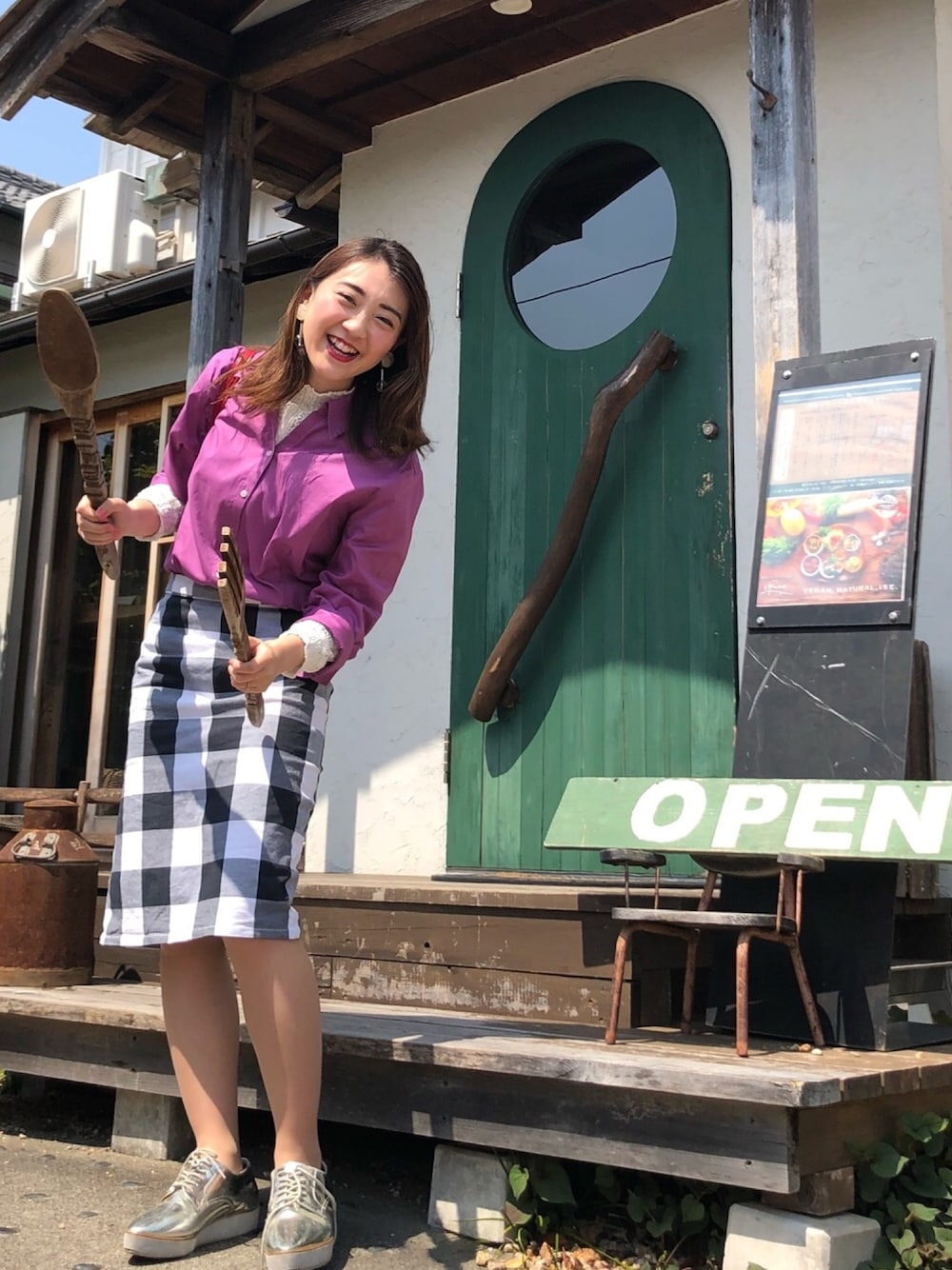 こんにちは!すごくすごく久々投稿🙋♀️ 今日はもう春なのでシャツコーデ💗💗 襟にはまってます😊 お友達とランチ行ってきました🤝💗 スカートのしわ😂😂
