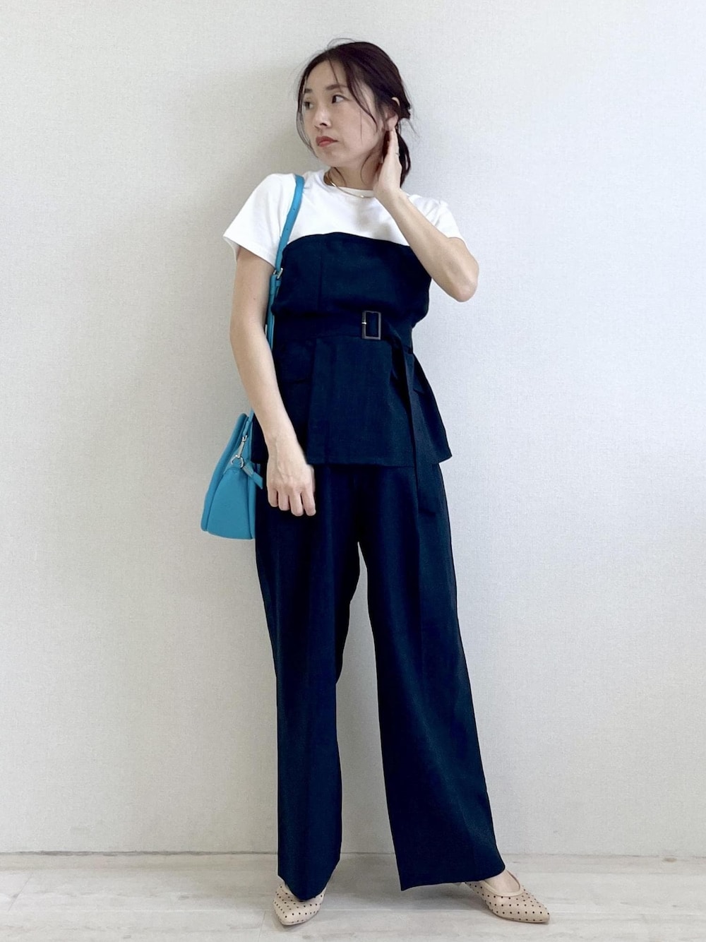 yuka(VIS ルミネ大宮)のスラックス「【美easy】リネンライクワンタックワイドスラックスパンツ」を使ったコーディネート