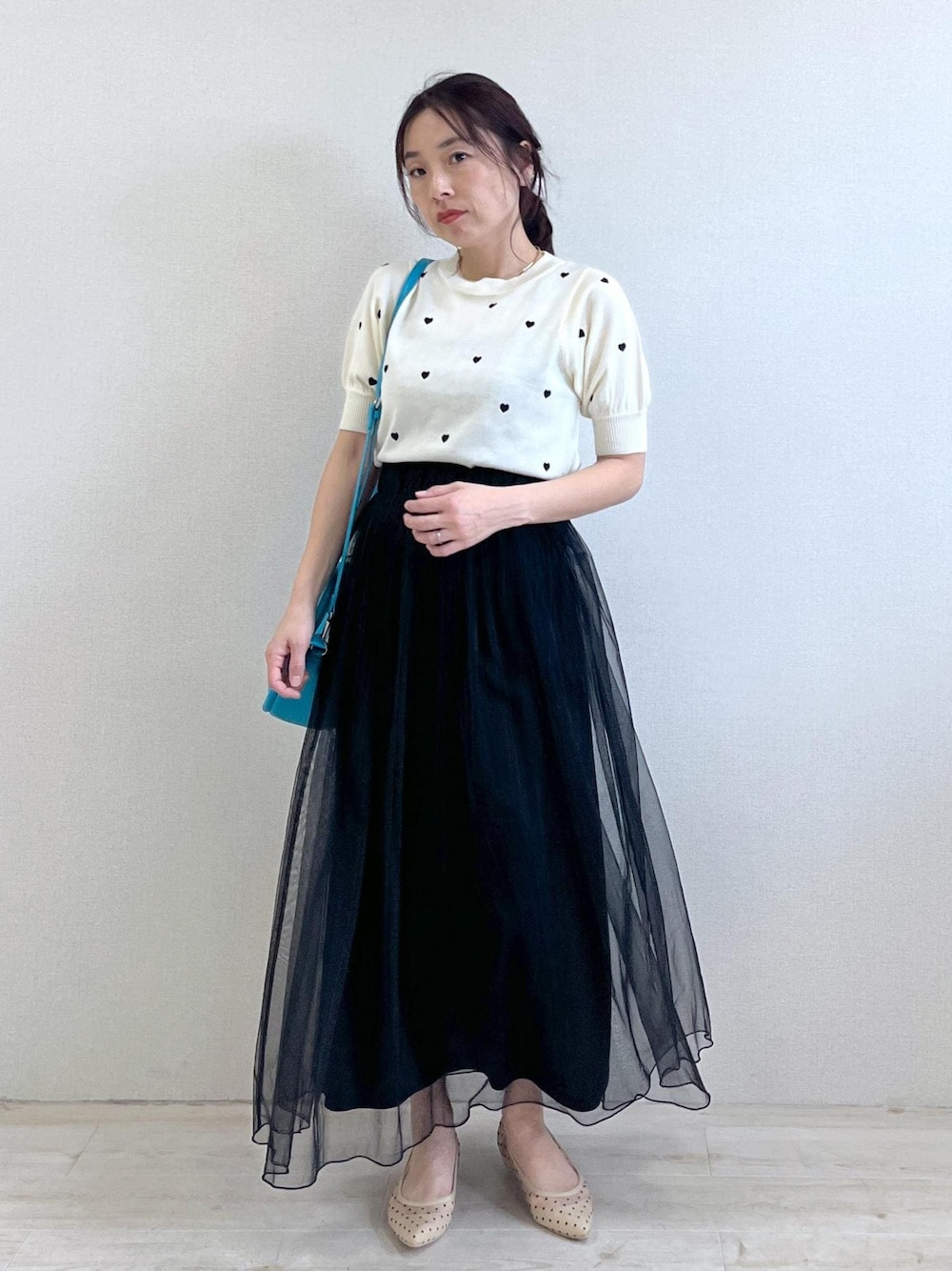 yuka(VIS ルミネ大宮)のパンプス「ドットチュールパンプス」を使ったコーディネート