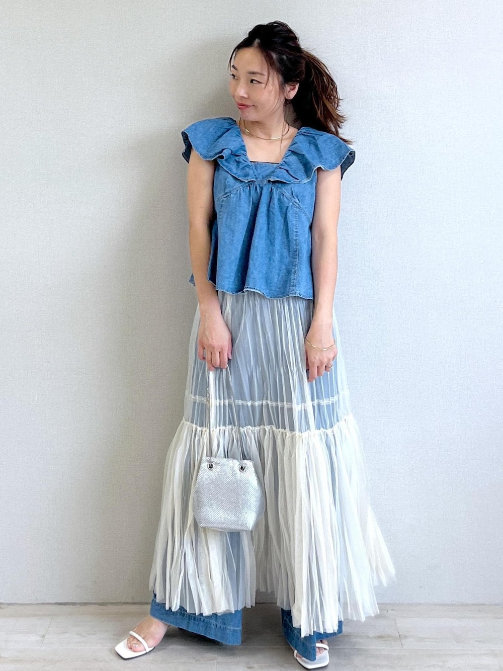 デニムのセットアップに、今年はスカートのレイヤードを プラスしてトレンド感を楽しみたいですね! オシャレさUPなスタイルです こちらのスタイリング気に入っていただけたらお気に入り登録よろしくお願いします♪ LINEで在庫のお問い合わせや商品、コーディネートのご相談など是非お気軽にお問い合わせくださいませ。 LINEでルミネ大宮VISスタッフにご相談は【友だち追加】をタップ!! <a href="https://lin.ee/8waDSck"style="background:url(https://scdn.line-apps.com/n/line_add_friends/btn/ja.png); background-size: contain; display: block;width: 116px;height: 36px; margin:.5em 0;"></a>