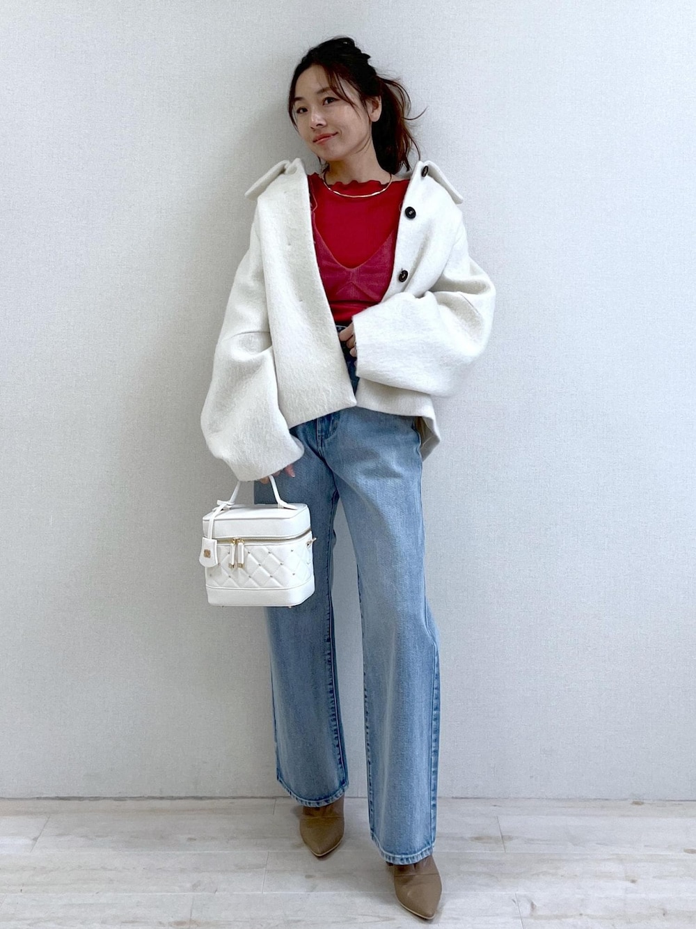 いつものホワイトコーデにクリスマスカラーのレッドをプラス 肌馴染みのいいカラーなので、雰囲気がグッと華やかに♡ お馴染みのデニムと合わせれば抵抗なく着ていただけますよ ご覧いただきありがとうございます こちらのスタイリング気に入っていただけたら♡マークでお気に入り登録お願いいたします 子供がいてもおしゃれを楽しみたい!シンプルなコーディネート更新中ですので、気軽にフォローしていただけたら嬉しいです♪ LINEで在庫のお問い合わせや商品、コーディネートのご相談など是非お気軽にお問い合わせくださいませ。 LINEでルミネ大宮VISスタッフにご相談は【友だち追加】をタップ!! <a href="https://lin.ee/8waDSck"style="background:url(https://scdn.line-apps.com/n/line_add_friends/btn/ja.png); background-size: contain; display: block;width: 116px;height: 36px; margin:.5em 0;"></a>