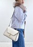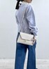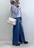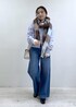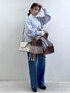 袖レースのタートルインナーに、アソートボタンがアクセントのパープルカーディガンをオン。 ラインストーン付きデニムでカジュアル感の中にきらっと女性らしさをプラス。 白バッグと黒ブーツでまとめた、冬の淡色×デニムスタイルです。